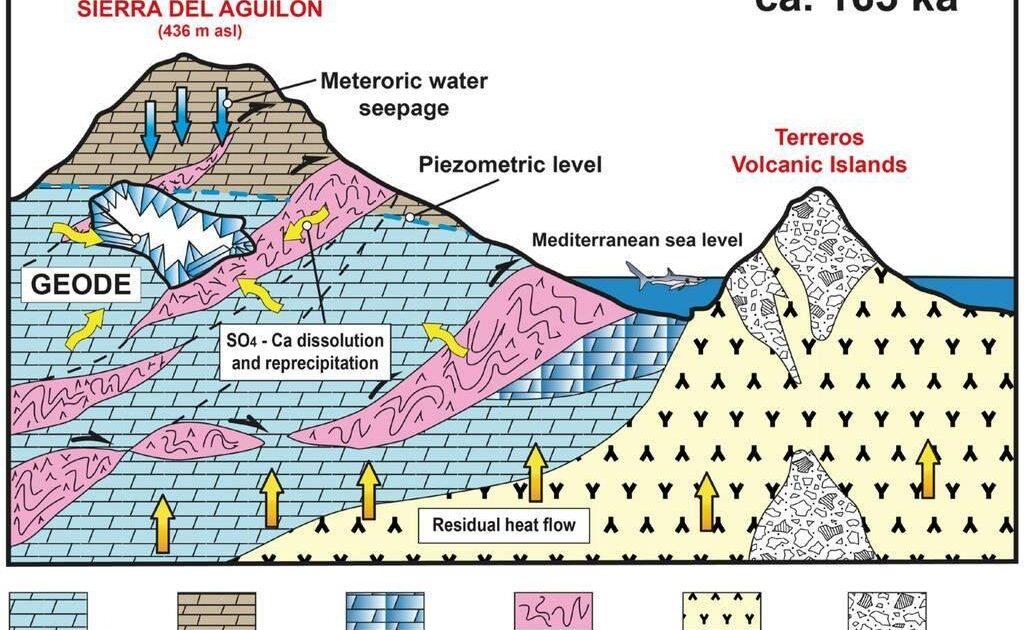6 miljoen jaar geleden was dit gebied een zeebodem. Middellandse Zee-water sijpelde in dolomietscheuren rijk aan calciumsulfaat.