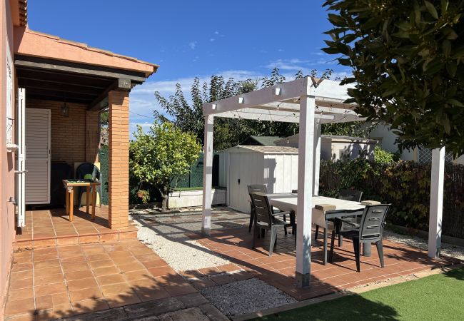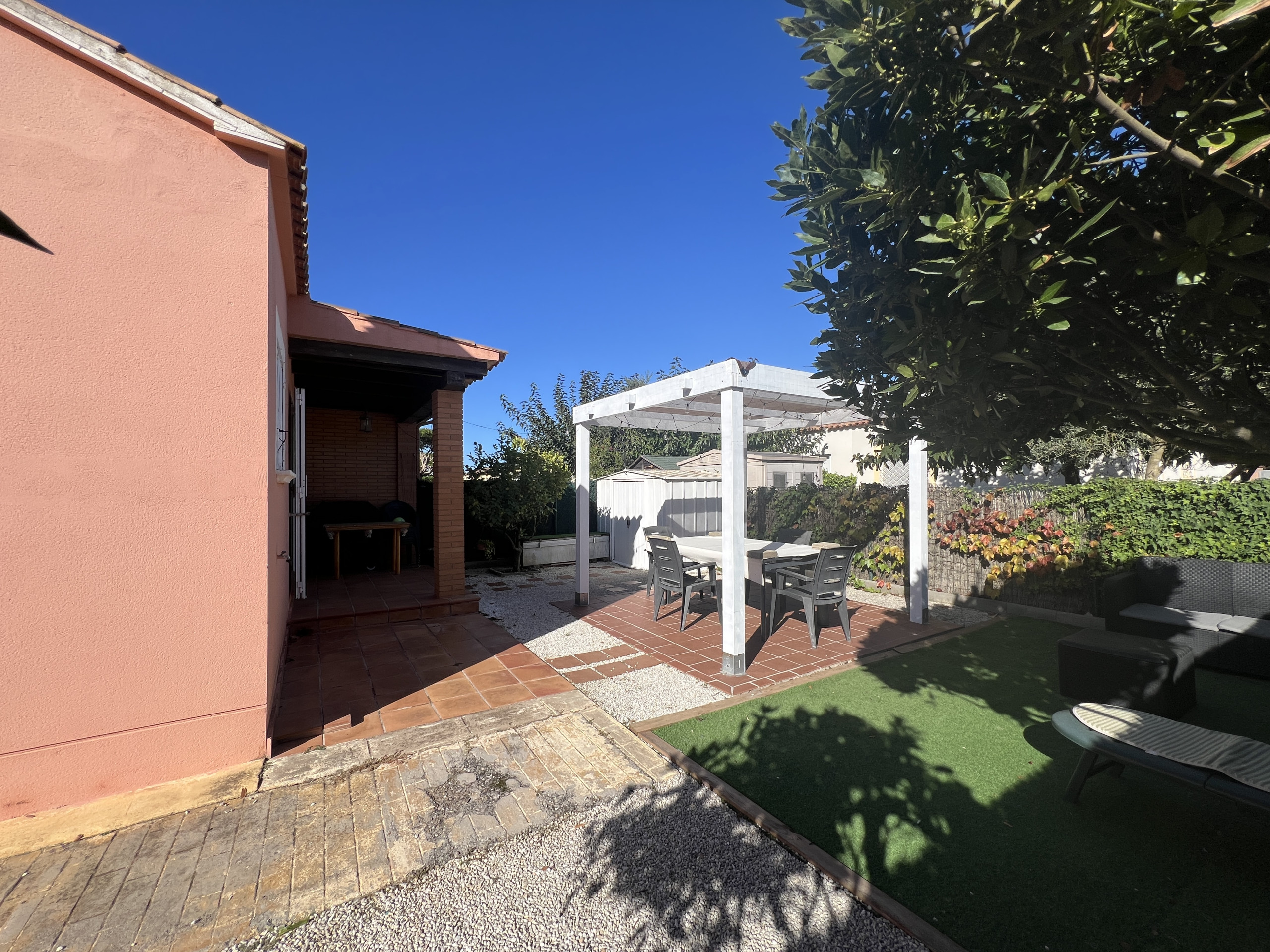 Entdecke dieses charmante Reiheneckhaus in der ruhigen Wohnanlage Mas Pinell! Mit einem großzügigen Garten, der das Grundstück umgibt, bietet diese Familienzuflucht einen idealen Raum zum Genießen im Freien. Das Haus verfügt über einen praktischen Eingang, der ein komplettes Badezimmer beinhaltet.