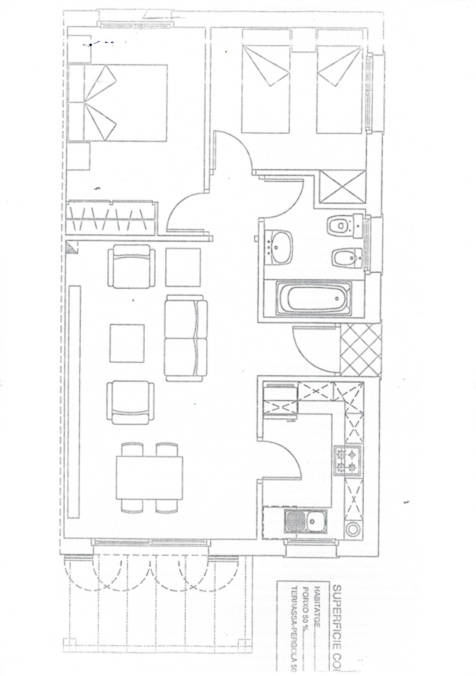 Die Verteilung auf einer einzigen Etage erleichtert den Alltag, und die zwei gemütlichen Schlafzimmer, ein Kinderzimmer mit Etagenbett für drei Kinder und ein Elternschlafzimmer, beide mit eingebauten Schränken, garantieren den Komfort der ganzen Familie. Das Wohnzimmer mit seinem warmen Kamin wird zum perfekten Ort zum Entspannen, während der Essbereich, ausgestattet mit einem Deckenventilator, eine frische und angenehme Atmosphäre bietet.