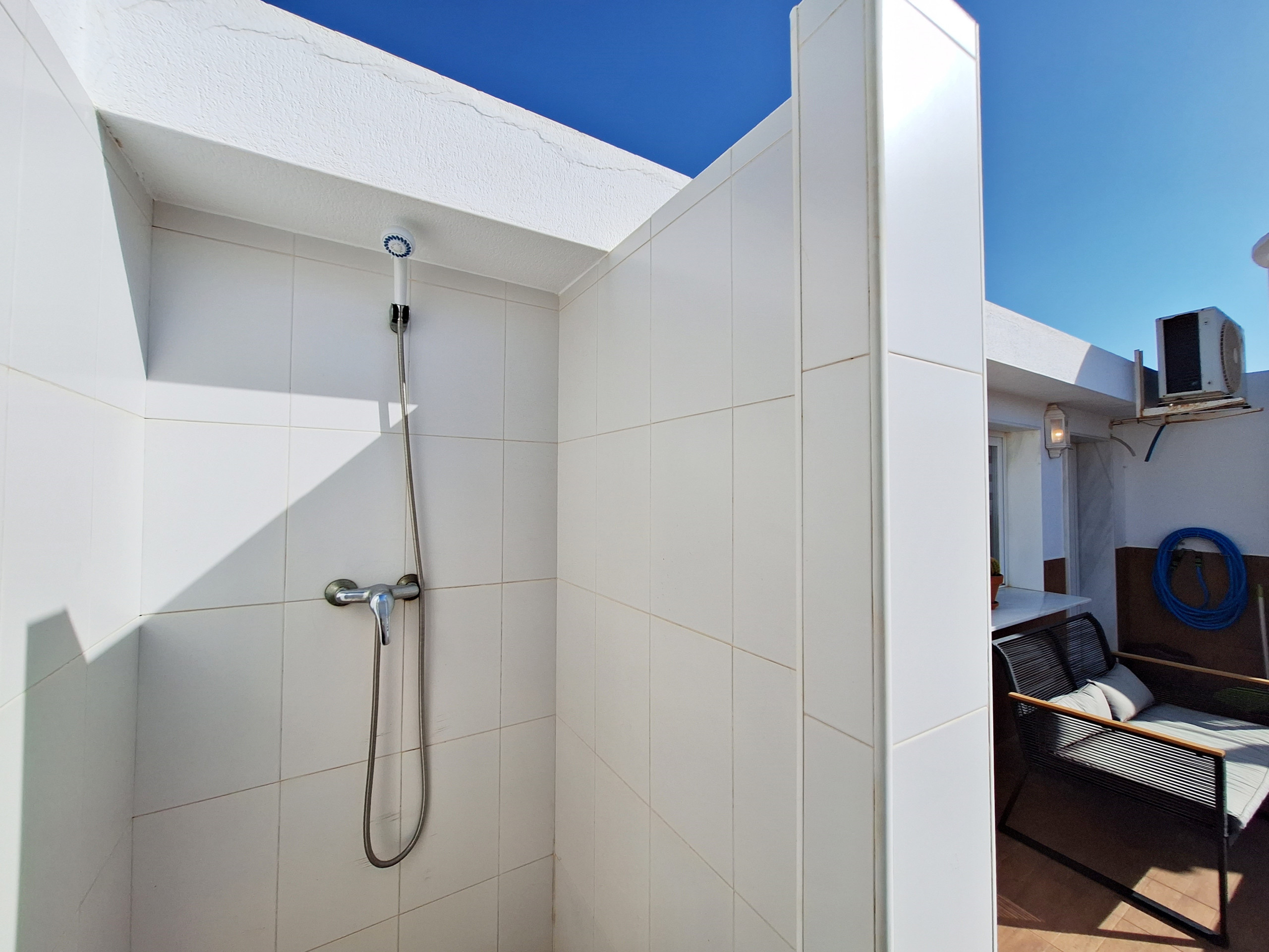 Buchen Sie Ihre Ferienwohnung in diesem Penthouse mit Klimaanlage/Heizung, Parkplatz und Sonnenterrasse mit Dusche, Grill und einem zusätzlichen Raum mit Klimaanlage und Küche. Das Penthouse befindet sich in einem Wohngebiet mit Gemeinschaftspool. Wenn Sie die Nebensaison bevorzugen, schauen Sie sich die Angebote für längere Aufenthalte an!