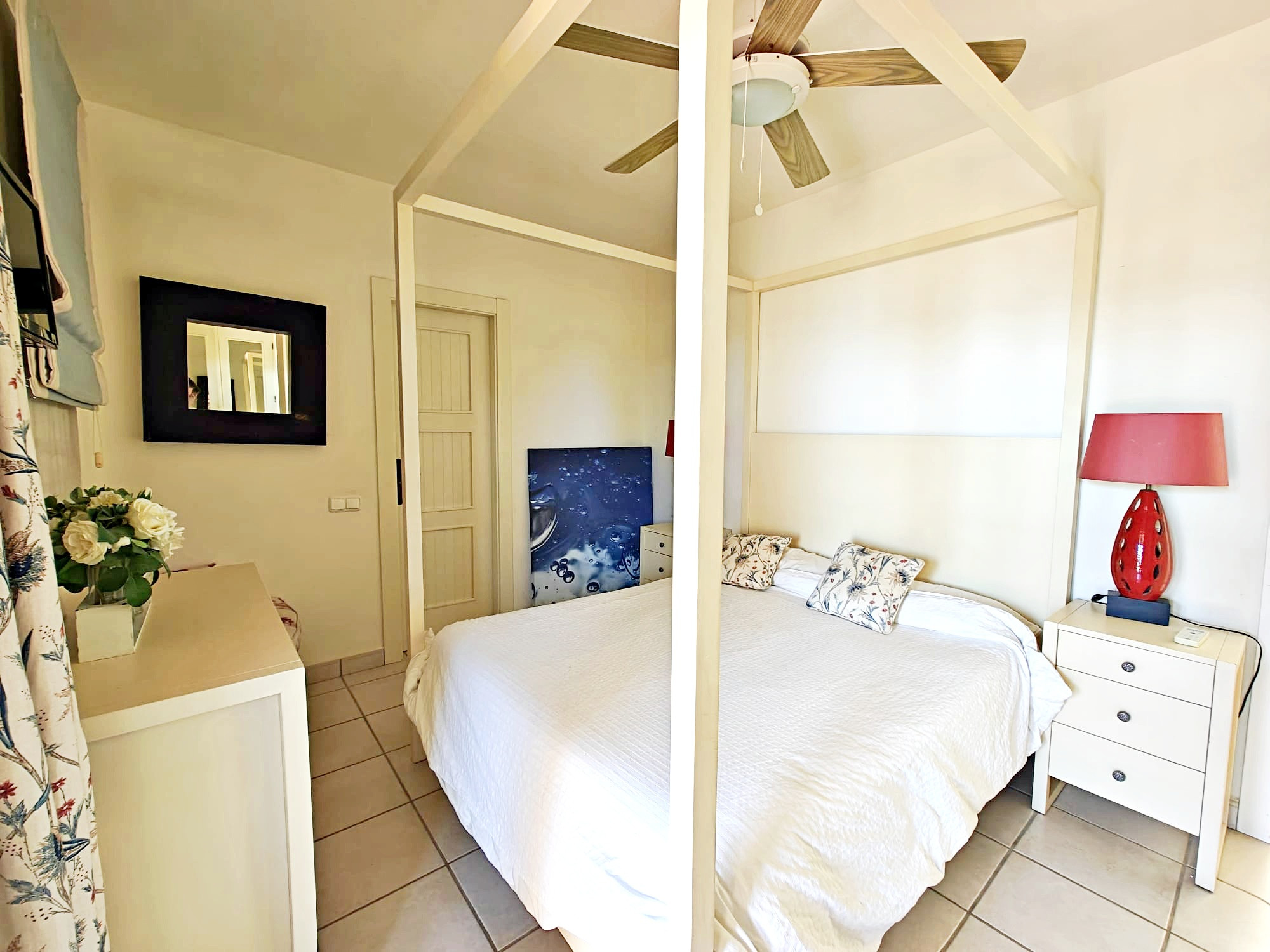Sehr geschmackvoll eingerichtet, Deckenventilatoren in den Zimmern und Klimaanlage in der Master-Suite.