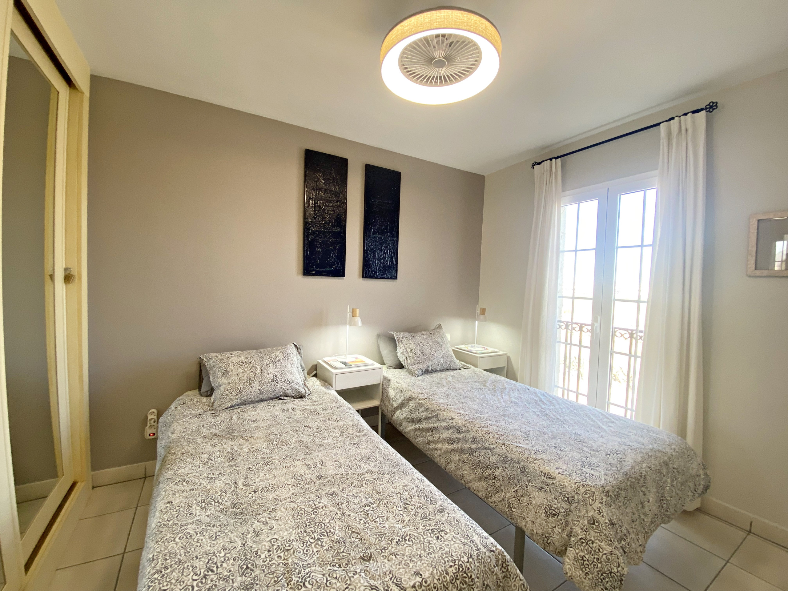 Met een maximale capaciteit voor 4 volwassenen heeft deze woning de volgende indeling: Op de begane grond vindt u een volledig uitgeruste keuken, een toilet en een woon-eetkamer met Smart TV en directe toegang tot het terras en het gemeenschappelijke zwembad. De eerste verdieping heeft 1 slaapkamer met een tweepersoonsbed + 1 complete badkamer en-suite met bad + 1 balkon met uitzicht op het gemeenschappelijke zwembad, 1 slaapkamer met 2 eenpersoonsbedden en 1 toilet met douche. Op de tweede verdieping kunt u genieten van het zeezicht op het zonneterras.