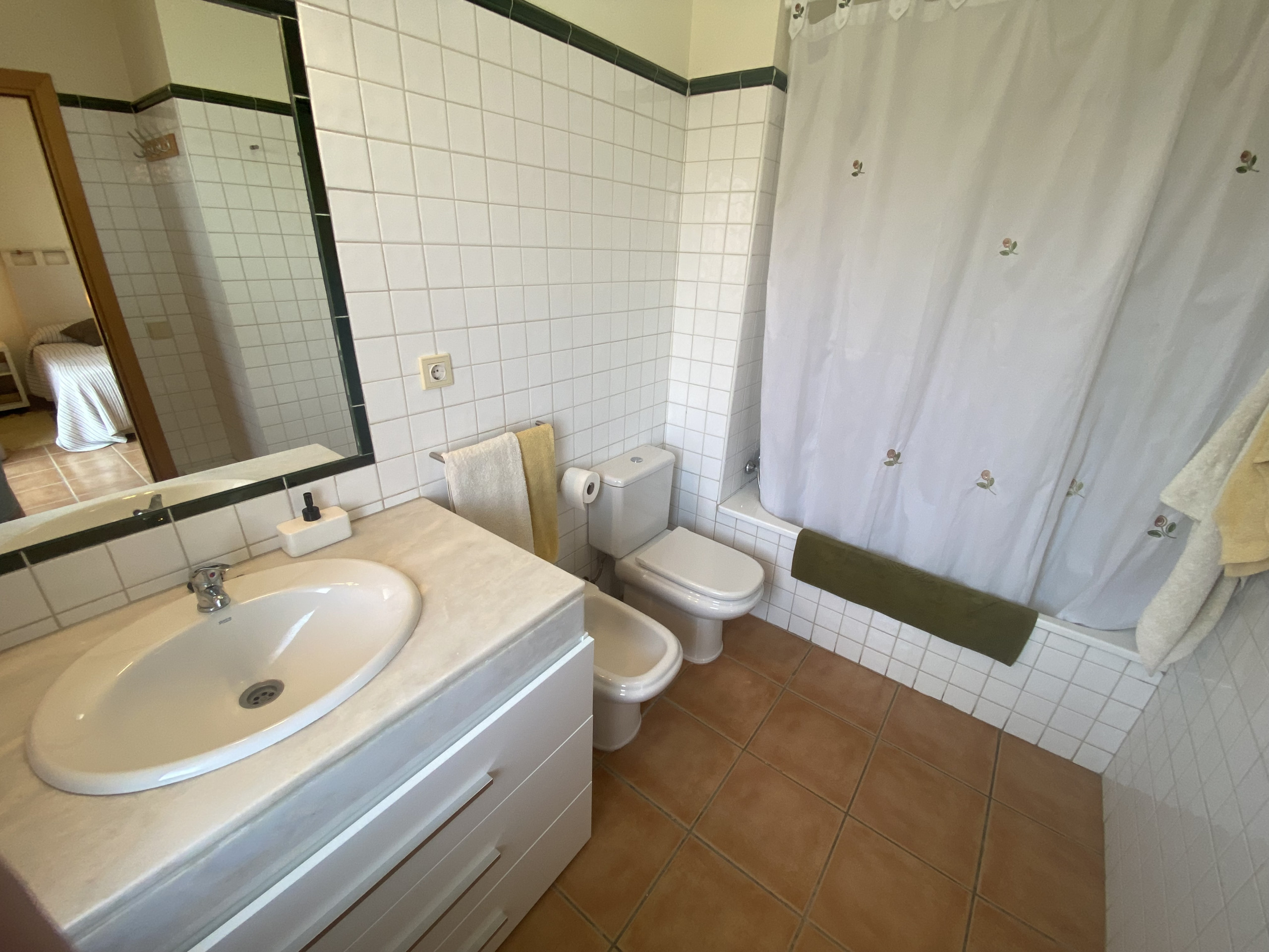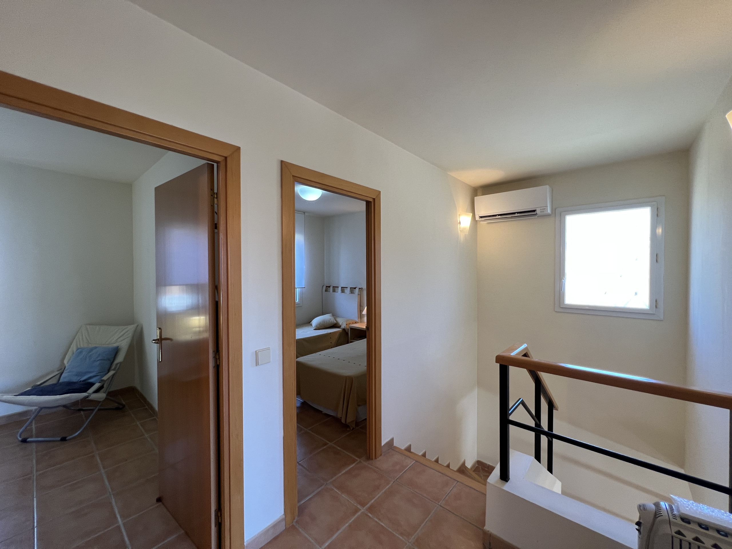 La vivienda cuenta con 3 dormitorios bien distribuidos: un dormitorio principal con cama doble y 4 camas individuales, garantizando un descanso cómodo para todos los huéspedes. La casa dispone de 2 baños completos, uno con ducha y otro con bañera, facilitando la rutina diaria de los viajeros.