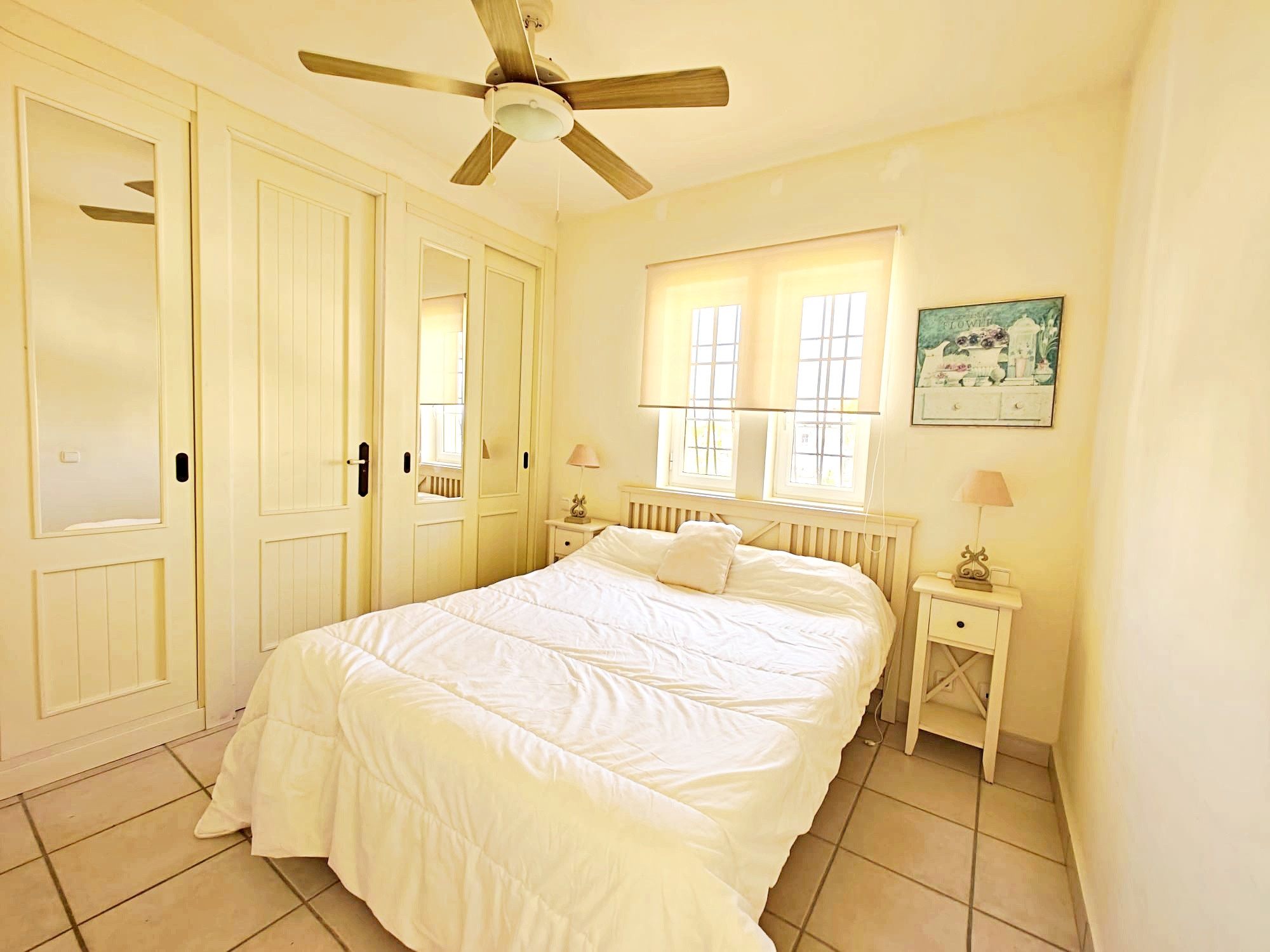 Planta baja: un dormitorio con literas, un baño completo con ducha, cocina independiente completamente equipada con lavaplatos, lavadora… amplio salón comedor con cómodos sofás y TV. Decoración exquisita y ventiladores de techo en las estancias principales y aire acondicionado en la suite principal.