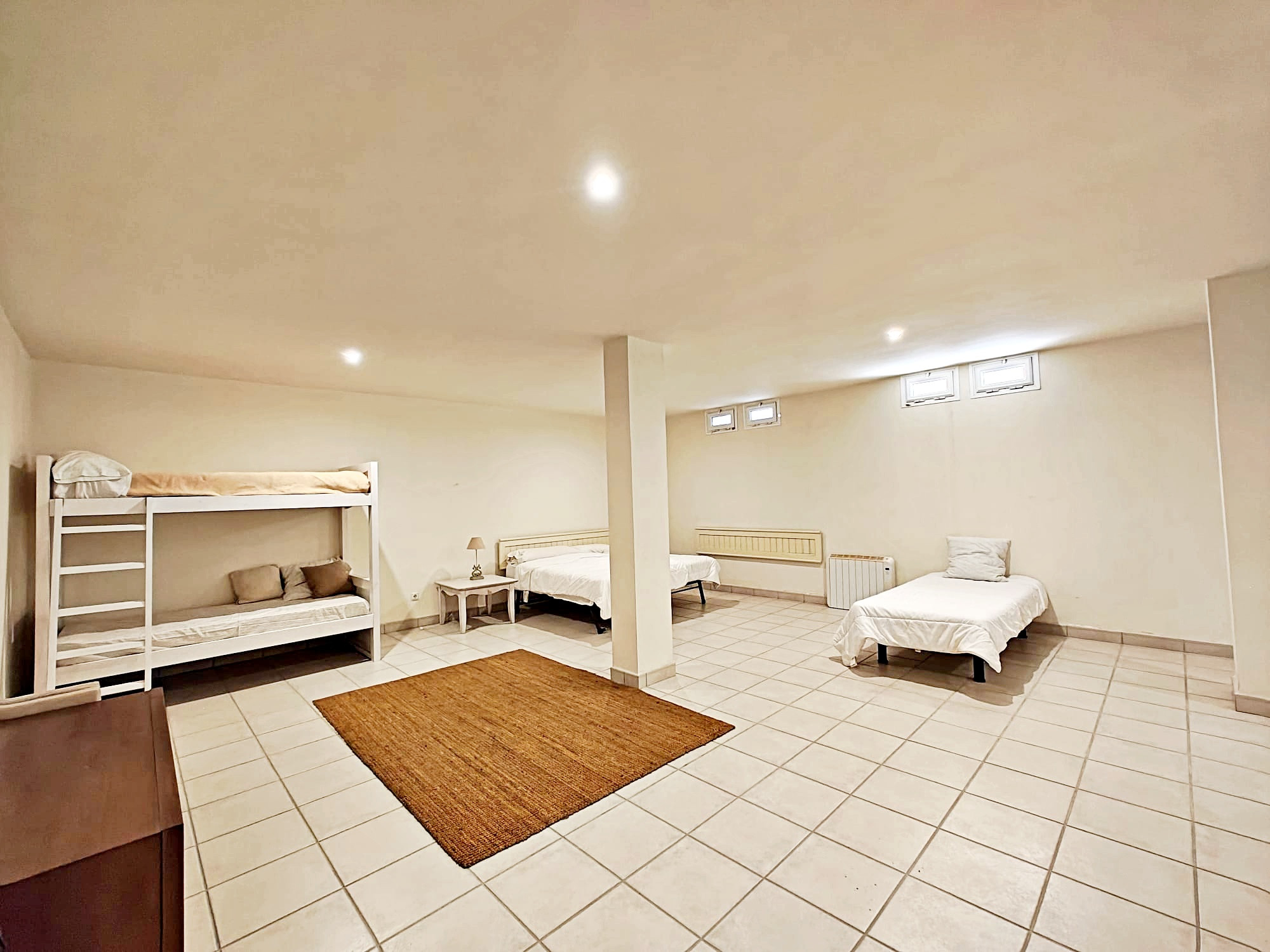 Parcela exterior vallada para total intimidad, con piscina privada y caseta con barbacoa portátil y frigorífico. Hay un sótano diáfano con posibilidad de 3 camas individuales más. Parking dentro de la parcela.