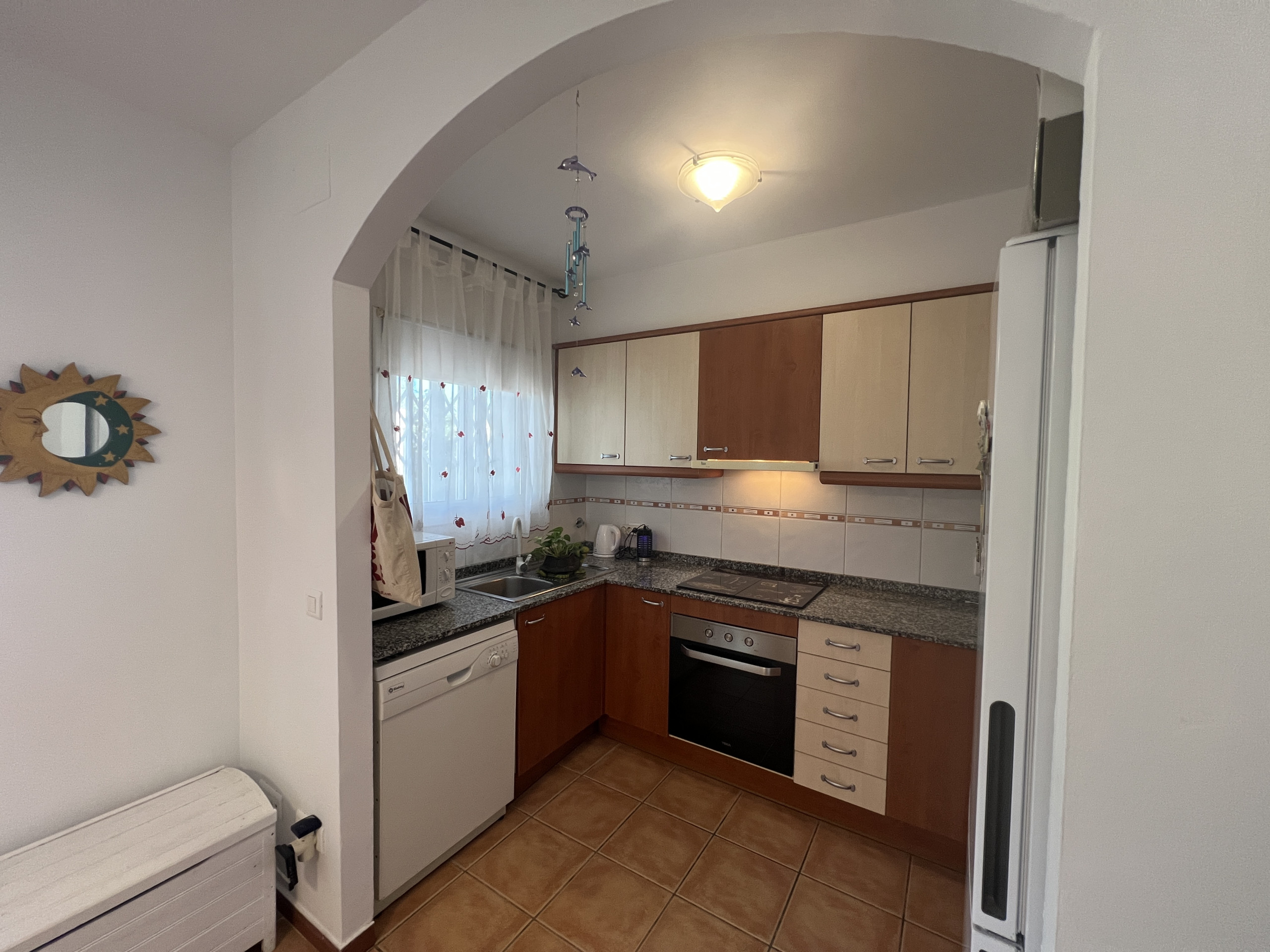 La cocina abierta está completamente equipada y lista para que prepares deliciosas comidas. Además, las puertas correderas te permitirán acceder directamente al jardín y a la terraza cubierta, donde podrás disfrutar de momentos inolvidables al aire libre. La propiedad también incluye una casita tipo trastero y un rincón de "lounge" para tus momentos de relax.