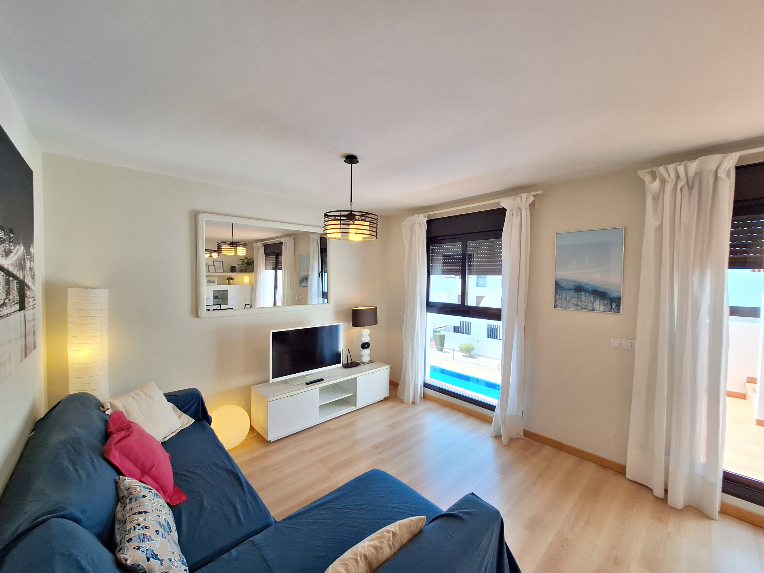 Passez vos vacances dans cet appartement avec terrasse-solarium, climatisation / chauffage, parking, et qui accepte également les animaux de compagnie. Situé dans une résidence avec piscine collective à seulement 150 mètres d'El Playazo. Si vous préférez la basse saison, il y a des offres pour les longs séjours !