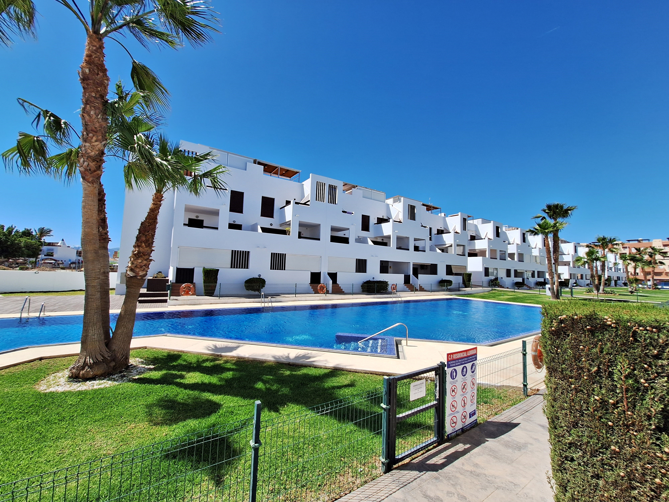 Situés dans la résidence Alborada, un ensemble résidentiel à environ 150 mètres d'El Playazo, avec ascenseur, piscine commune + piscine pour enfants (ouvertes en juin, juillet, août et septembre), terrain de padel, aire de jeux pour enfants et garage souterrain. À seulement 200 mètres, vous trouverez des bars et des restaurants, et un grand supermarché et un parc aquatique à moins de 5 minutes en voiture.