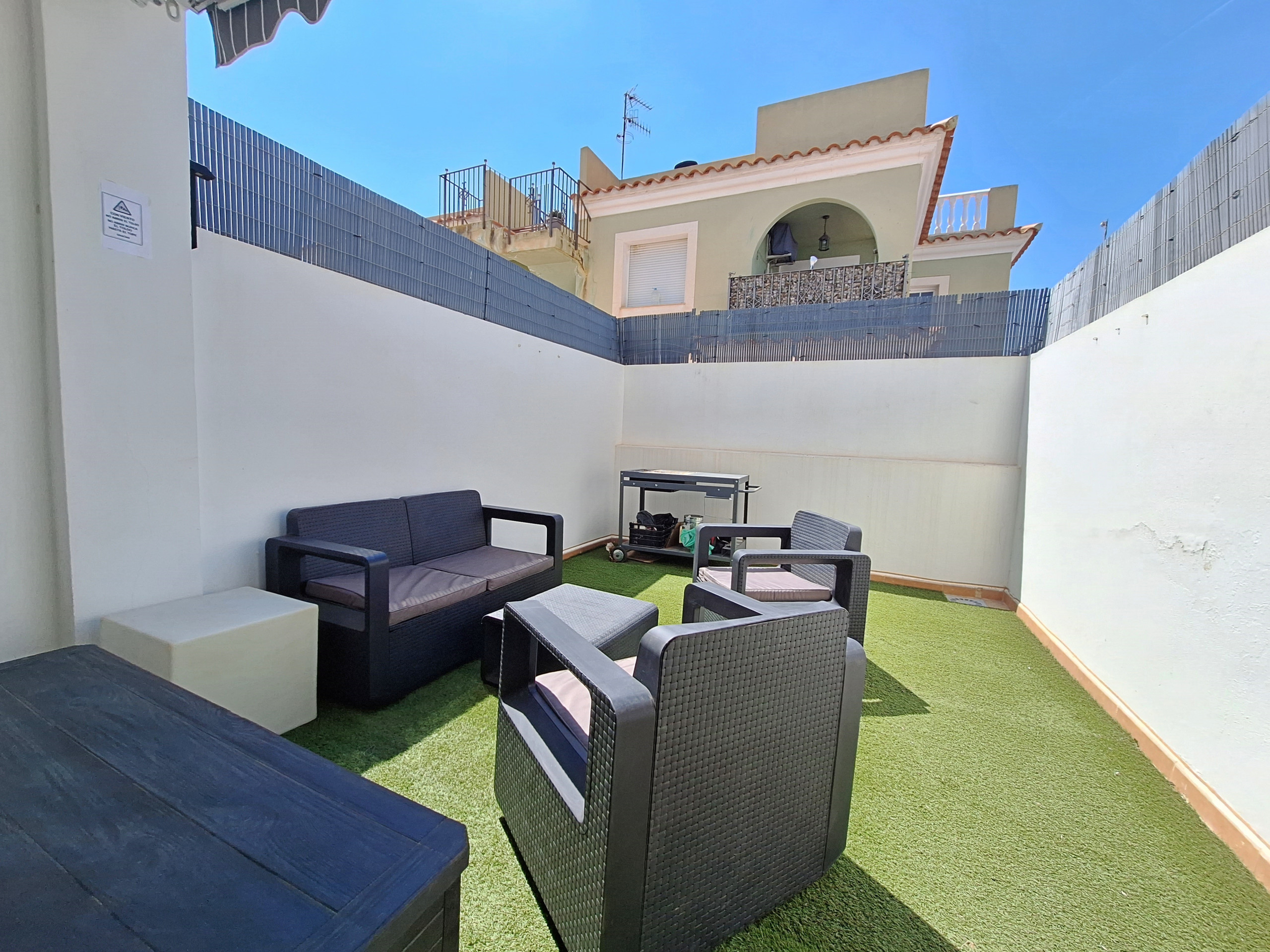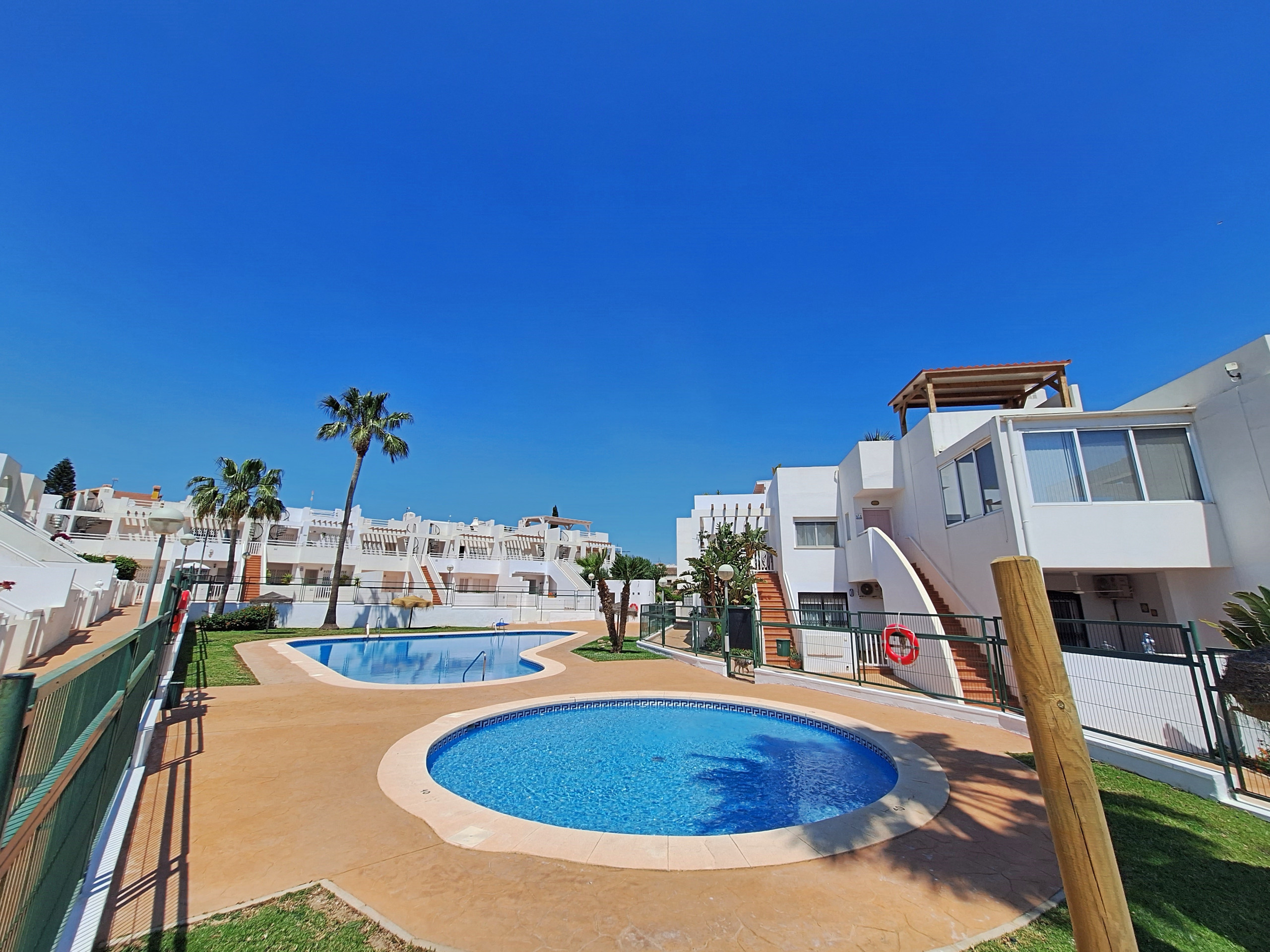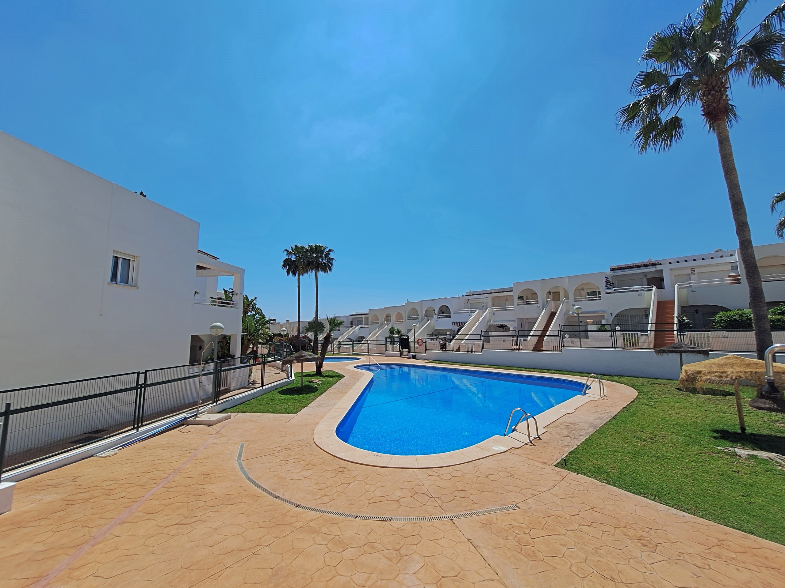 In the Jardines de Palomares urbanisation, in the village of Palomares, with communal swimming pool (open in summer) and landscaped areas. Several bars and restaurants and a supermarket in the village. The nearest beach is less than 5 minutes' drive away.