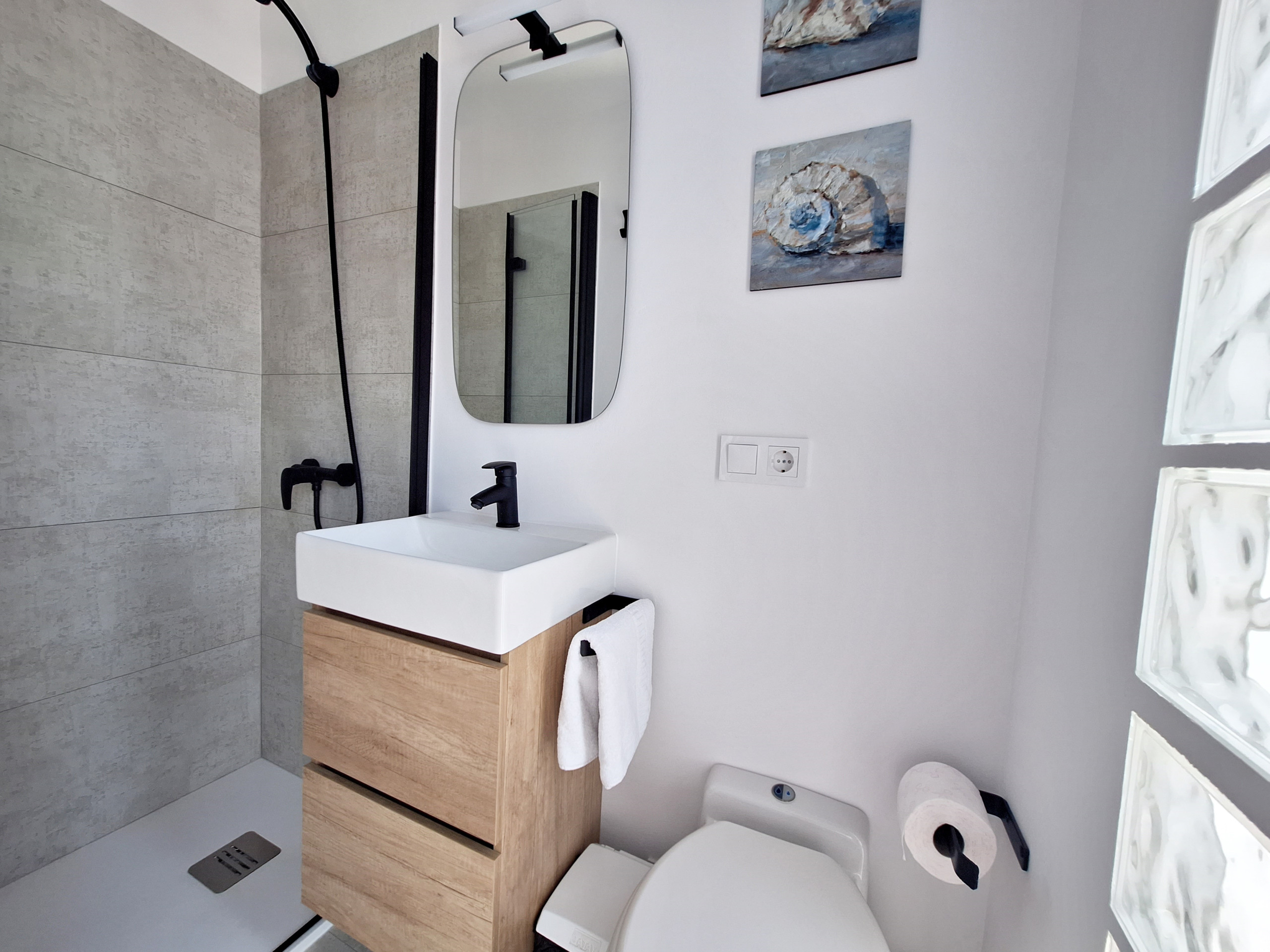 With capacity for up to 6 adults, the house is distributed over 3 floors: On the ground floor, there is a living-dining room with a fireplace and direct access to the private garden, a fully equipped kitchen, and a toilet. On the first floor, you'll find 2 bedrooms: one with a double bed and an en-suite bathroom with a shower, and another bedroom with a double bed and an en-suite bathroom with a bathtub. On the second floor, there is an attic bedroom with 2 single beds, a toilet with a shower, and a private terrace with sea views where you can relax in the sun.